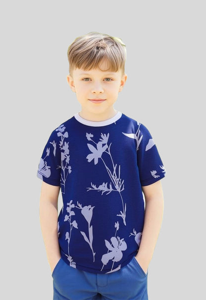 kids floral allover printed t shirt, 100% cotton jersey for summer.